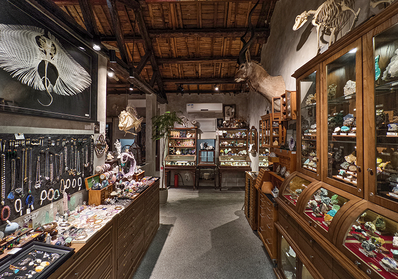 出于对自然万物的好奇心,90后男生大石开启了自己的寻宝与收藏之旅。 在北京艺术小镇宋庄,藏着一家名叫HOLOOTYPE的私人自然博物收藏馆。 从小喜欢生物的大石,一直梦想拥有自己的私藏博物馆。这个融合了博物艺术收藏与咖啡馆的空间,正是他梦想 的起点。他筹备七年,足迹遍布东南亚、非洲、欧洲等地,收集了足够多的东西,才建起这个庞杂有趣的异质空 间。 推开门,近3000多种来自世界各地的珍稀之物映入眼帘,仿佛步入一个生机勃勃的微缩自然世界。240平方米的高 挑空间里,中古风格的陈列柜中摆满晶莹剔透的萤石、水晶、方解石、孔雀石等矿石;墙上悬挂着以甲虫、蝴蝶 标本精心排列而成的艺术装饰画;精细的鱼骨标本与各种鸟类标本错落摆放。抬头望去,巨大的座头鲸骨骼模型 悬于屋梁,手工涂装出了陈旧的斑驳感,令人联想起英国自然历史博物馆中高悬的巨型蓝鲸骨架。 这家收藏馆的主理人是90后北京男孩大石,艺术专业平面设计出身。 店内动植物标本多由他亲手制作,矿石与化石则来自他十多年来从世界各地收集——德国的侏罗纪菊石、南极科 考船采集的钩虾、世界最大的日本冲绳海蜷、马来西亚的珍奇甲虫、南美洲的蓝闪蝶、摩洛哥的三叶虫化石、西 非的沧龙牙齿化石 ...