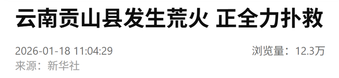来源:新华社 编辑:孟 媛 校对:李莹莹 审核:朱稳坦 记者18日从云南省怒江州相关部门了解到,16日16时51分,怒江州贡山县丙中洛镇甲生村发生荒火。火情发生后,当地已组织应急、林草、消防等扑火力 量326人参与处置工作,暂无人员伤亡。 据介绍,截至17日22时,此次荒火火线长度约600米,过火面积约600亩,火场周边无居民点等重要设施。由于火场毗邻悬崖、地势陡峭,扑救难度较大, 各扑救小组于火线1公里处开展可燃物清理作业,构筑防火隔离带。截至18日8时,相关扑救工作正在进行中。 ...