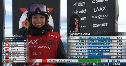 北京时间1月17日晚,2025-26赛季自由式滑雪世界杯瑞士莱克斯站女子坡面障碍技巧决赛,谷爱凌以85.13分获得冠军。这是她本赛季首个坡面障碍技巧 的冠军,也是其个人的第20个世界杯冠军。另一名中国选手刘梦婷排名第十。 来源:央视体育 编辑:施 予 校对:赵钰阳 审核:张晓雅 ...