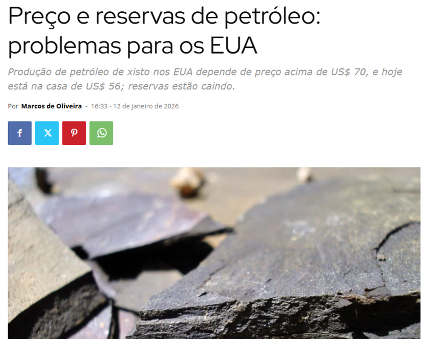 Group 1 - The American Petroleum Institute (API) is collaborating with the government to fill the Strategic Petroleum Reserve, with market expectations of increased demand supporting rising oil prices [1] - As of January 13, the main contract for West Texas Intermediate (WTI) crude oil rose by 1.22% to $59.84 per barrel, while Brent crude oil increased by 1.41% to $64.23 per barrel [1] - The article from "Valor Econômico" highlights that gasoline and credit cards are two key drivers of U.S. economic growth, and despite being the largest oil producer globally, low WTI prices may not cover extraction costs, potentially leading to production delays or cuts [1] Group 2 - Despite being the largest oil producer, the U.S. does not have the highest oil reserves, which are currently declining [4] - According to the U.S. Energy Information Administration (EIA), proven reserves of crude oil and condensate in the U.S. decreased by 3.9% in 2023, from 483 billion barrels to 464 billion barrels [4] - Additionally, proven natural gas reserves in the U.S. have declined by 12.6% since 2020, marking the first annual decrease since that year [4]