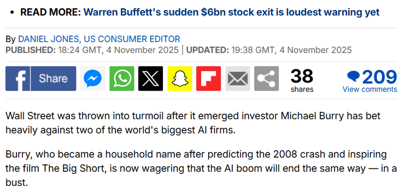 美股三大股指全线收跌,华尔街著名大空头警告AI泡沫