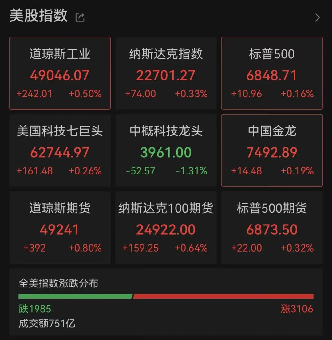 美股超3000只股票上涨,AMD拿到超级大单,股价一度直线飙升15%!加密货币跳水,超13万人爆仓,金银也大跌