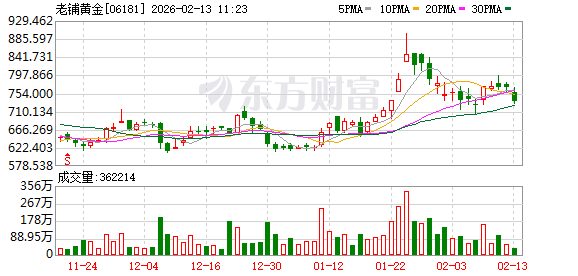 Group 1 - The stock of Laopu Gold (06181.HK) has experienced a decline of over 5%, specifically a drop of 5.14%, bringing the share price to 729.5 HKD [2] - The trading volume for Laopu Gold reached 238 million HKD at the time of reporting [2]