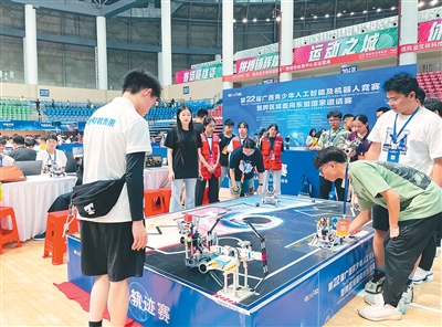 "好险!刚才差点没有准确撞击传感器。"来自越南的学生肯长舒一口气。这是12岁的肯第一次来到中 国,他与同学一起设计了机器人,要与其他国家的孩子们"掰掰手腕"。 在广西贵港,第22届广西青少年人工智能及机器人竞赛暨跨区域面向东盟国家邀请赛现场,来自中国和 东盟国家的1050支队伍,约6000名青少年、教练员在这里同台竞技,展示创新风采。借助赛事搭建平 台,是近年来广西面向东盟国家进一步推进技术交流合作的生动缩影。 中外选手同场竞技 讲起自己的参赛机器人,来自马来西亚的中学生杨时祖兴致勃勃。 面前是一块宽2米、长3米的比赛场地,学生们自行组装的机器人要在场地上完成穿越障碍、触碰星际之 门、精准射靶等6项任务。其中,还有"黑洞"等障碍设置。 比赛中,速度快、精准识别度高、运行更平稳的机器人将赢得比赛,项目考查的是学生的编程能力、设 计与调试机器人的技能。 "机器人下方的传感器是为了辨别颜色,当它继续向前时,图像识别功能会根据看到的不同图案来决定 能否继续前行。"杨时祖抱着机器人仔细解释。在他看来,所有环节中最难的部分是对AI摄像头进行训 练,让它能够更准确地在移动中识别不同图形。 为保证公平,所有的比赛线路地图是在 ...