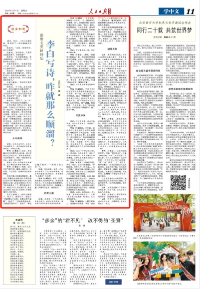 清代,苏州,一对小夫妻沈复、陈芸来了一场妙趣横生的对话。 陈芸问:"夫君,我想学诗,有什么推荐?" 沈复说:"学诗的话,不是李白就是杜甫了,你想学谁?" 陈芸说:"杜诗锤炼精纯,李诗潇洒落拓。与其学杜之森严,不如学李之活泼。" 沈复有些惊讶:"杜甫是诗家之大成,人们一般都学杜甫,你为什么偏学李白?" 陈芸说:"格律谨严,词旨老到,确实是杜甫所擅长的,但李白的诗有一种落花流水的趣味,令人喜 爱。不是杜不如李,只不过我偏爱李白罢了。" 沈复打趣道:"没想到你是李白的知己啊。" 陈芸说:"不只他,还有白居易呢,他可以算我的启蒙老师吧。" 沈复开玩笑说:"有意思,李太白是你的知己,白乐天是你的老师,我正好字'三白',你跟'白'这个字真 有缘分啊。" 陈芸说:"那坏了,与'白'字有缘,将来恐怕白字连篇啊。" 这则记载在《浮生六记》里的故事,反映出人们对李白、杜甫的一般认知,那就是杜甫的诗有章可循, 是能学的,李白的诗直出胸臆,没法学。为什么李白的诗,读起来那么流畅?那么平白如话?可想模仿 的话,却发现如羚羊挂角,无迹可寻,李白是怎么做到"用最简单的字词写出最豪情的诗篇"的?本报记 者就此来到盛唐时期的长安,专访李白。嗯 ...