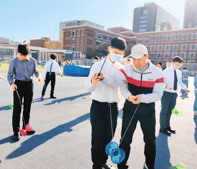 黄欣欣摄 人民日报海外版电(钟欣)近日,台湾宝吉祥文史教育协会一行近40名师生来到北京市第八中学(以下 简称北京八中),和该校师生一同抖空竹、写毛笔字、切磋乒乓球球技,共赴一场青春之约。 在书法教室内,北京八中学生刘承烨与来自台湾的新同桌并肩而坐。他说:"之前没接触过台湾同学, 很好奇他们平时学什么、有什么兴趣爱好。"两人一边临摹对联"百舸争流花似锦,千峰竞秀水如银", 一边热络交流。刘承烨发现,这位台湾朋友同样热爱游泳和乒乓球,彼此毫无距离感。 "北京的同学和我们一样,特别活泼,相处起来很自然。"台湾高中生李阿德一边调整空竹的平衡,一边 分享感受。在操场上,他随着老师"右手往上提,左手往下跟"的指导抖动空竹,逐渐掌握节奏。 责编:张青津、卢思宇 活动当天,两岸学子还混合组队切磋乒乓球球技,蹬地、转腰、挥拍,你来我往间,白球疾速穿梭,令 人目不暇接。北京八中师生向台湾师生赠送了"诗礼传家久,炎黄一脉长"书法作品,台湾嘉宾回赠锦旗 和典籍。 台湾宝吉祥文史教育协会由台北故宫博物院前院长冯明珠担任常务理事,致力于推广中华文史教育。冯 明珠介绍,此次来访学生来自台湾多所院校,都是中华文化爱好者,他们中有的研习书法多 ...