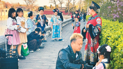 一顿火锅钱,体验低成本"穿越" 在北京,有这样一个"神奇"的地方:走进这里之前,还是普通"素人",从这里走出,则变成了"格 格""小主"——这就是距离故宫东华门仅500米的北京王府世纪大厦。这栋商业楼,如今成了全国规模最 大的"妆造体验工厂"。 当"留洋大小姐"与"晚清格格"的妆容在社交媒体上掀起热潮,当故宫红墙下的"公主"身影成为流动的风 景,一种聚焦于"妆造"的消费新潮流正在城市悄然兴起。 在北京王府世纪大厦,鳞次栉比的妆造工作室构成独特的风景线。从"穿汉服拍照"到"沉浸式扮装",百 元级的沉浸式妆造体验消费如何撬动背后的大市场?记者进行了探访。 王府世纪B1层的一家工作室里,25岁的北京白领林然正对镜贴花黄。"刷到博主穿月白旗袍戴珍珠项链 的视频,立刻拉着闺蜜来复刻!"林然对记者说,"最近'留洋大小姐'和'晚清格格'的组合在社交平台很 火,两种截然不同的风格,正适合和好友一起来体验。"林然介绍,她选择的188元套餐包含妆发、服装 租赁和道具。两人带着CCD相机钻进胡同,互拍了一组"民国风"写真。傍晚,她将九宫格照片发到朋友 圈。"朋友问是不是花了大价钱,其实成本也就是一顿火锅钱。"林然说。 在北京市故宫 ...