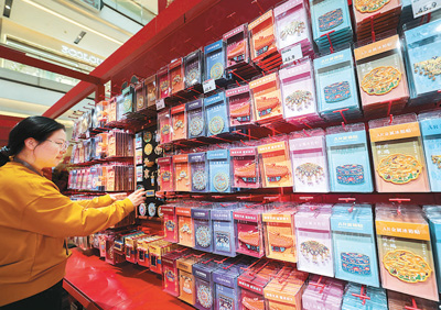 宁波素年工艺品有限公司的联名文创产品在浙江省余姚市 的商场内进行展示销售。 新华社记者 徐 昱摄 3月25日,中国国家博物馆文创产品凤冠冰箱贴累计销量 突破100万件,带动凤冠IP全系列产品销售额跨越亿元。 图为来自山东的游客(前左)成为第100万件凤冠冰箱贴 的购买者。 新华社记者 金良快摄 扫码观看视频 买冰箱贴,喝养生茶;来一番古风妆造,探访一家城市首店;用露营装备打开生活方式,凭打卡清单挖 掘城市"宝藏"……今日中国城市涌动着一股股消费新潮流,聚集着一批批年轻消费者。 从今天起,本报推出"消费新潮流,释放新热度"系列报道,带领海内外读者走进消费一线,一起领略中 国消费市场的新潮流、新趋势,感受年轻群体消费的无限创意和想象力。 ——编 者 8个月零6天,100万件,这是中国国家博物馆凤冠冰箱贴的销售"战绩"。 一上架就火了,存货售卖一空;购买者线下大排长队,线上预约抢购;"种草攻略"备受欢迎,许多网友 热情收藏讨论……去年以来,冰箱贴火爆出圈。 从凤冠冰箱贴到天宫藻井冰箱贴、乾隆御碑亭流沙落叶冰箱贴,冰箱贴这一看似古老的工业产品是如何 站上C位,变身文创"顶流"的?年轻人争相购买分享的背后,哪些变化让冰 ...