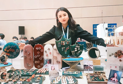 二〇二四年十二月,彭章英在广州南沙国际会展中心参加"多多侠·产投杯"创新创业项目路演赛。受访 者供图 彭章英,陶术工作者。她致力于探索色彩心理学在陶瓷中的治愈力量,以当代艺术丰富中国陶瓷,传播 陶瓷文化。 梦想起航 彭章英毕业于中央美术学院国际预科纯艺术专业。2015年,她赴英国金斯顿大学深造。 本科毕业展上,彭章英策划了一场题为"留下你的颜色和形状"的彩色橡皮泥互动装置艺术展,吸引了 400余名观众参与互动。她将不同颜色的橡皮泥圈悬挂于展厅上空,每个圈内嵌入一张温馨的黄色卡 纸。参与者挑选心仪的橡皮泥圈,发挥创意,捏制独一无二的彩色橡皮泥作品,附在卡纸上。 这些个体的艺术作品汇聚起来,共同构筑了一个充满生命力的色彩矩阵。"参与者都很喜欢我的互动装 置艺术展,并期望能有周边产品来纪念这段美好时光。这份来自观众的心声,成为我的创业初衷。"彭 章英说。 2018年,本科毕业后的彭章英选择回国。她来到景德镇,开始探索陶瓷色卡与非遗绞胎工艺,并进行短 期市场调研。同年,彭章英创立了自己的陶瓷首饰品牌"小小"。她介绍道:"这个品牌名寓意着:小小 陶火,可以燎原。我心中的理想就像小小的星火,点燃着我,驱使我不断向前,用色 ...