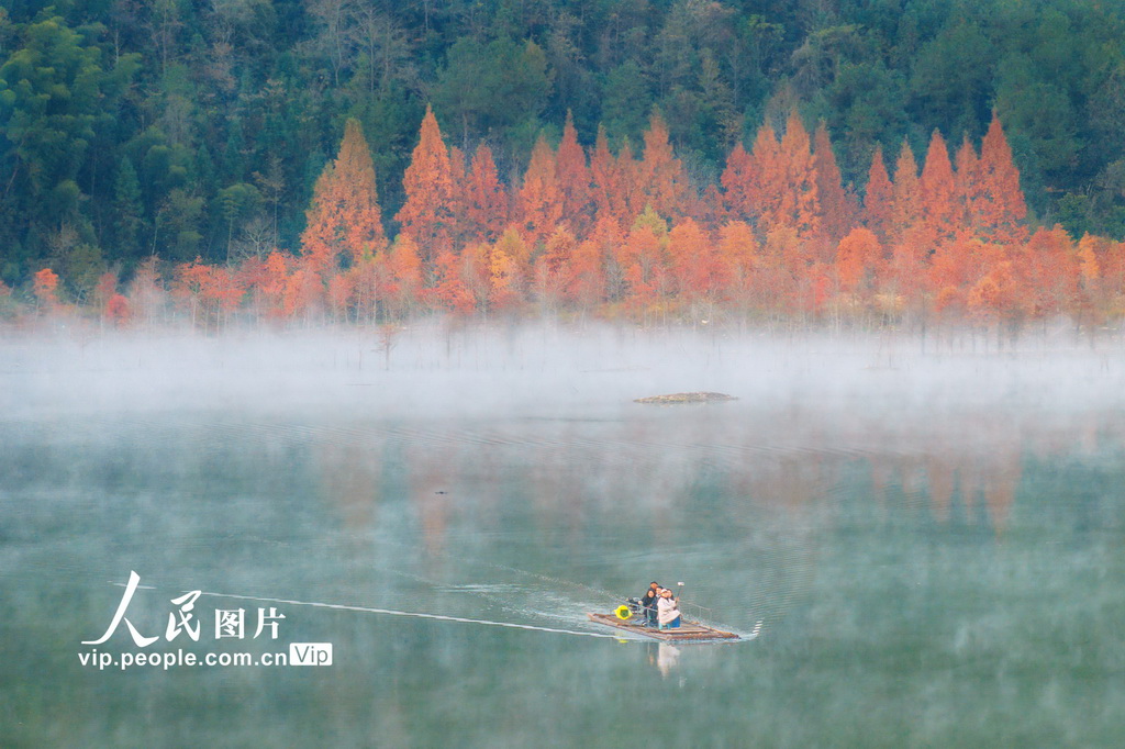 安徽宁国:落羽杉湿地公园晨雾缭绕