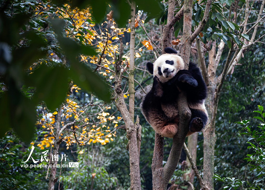 四川雅安:大熊猫萌态十足惹人爱