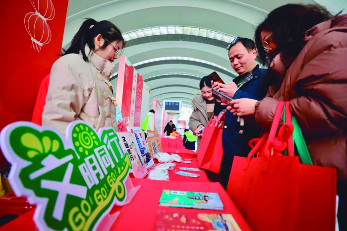 春运首日,南昌东站内暖意融融、年味浓浓。书法老师挥毫泼墨为旅客送"福"写联,医护人员提供健康 咨询与义诊,爱心义剪与全家福拍摄等服务广受欢迎……上海证券报记者在现场看到,一系列暖心服务 令人目不暇接,让返乡旅客从"匆忙赶路"变为"惬意享受"。 在二楼候车大厅的新春送福区,10位江西省文联书协名家与书法爱好者现场挥毫泼墨,一幅幅饱含暖心 寄语的春联与福字,陆续送到旅客手中。"本来赶路挺累的,领到免费的春联,一下子就有了过年的感 觉,心里很温暖。"正在候车的郭女士笑着说。 现场设置的多个便民服务区也吸引了众多旅客参与体验。在春运留影区内,"新春全家福、马年 送'姓'福"主题背景板前人气十足,旅客们纷纷驻足打卡定格美好瞬间。 "这场春运首日的活动,既是营造平安有序温馨的春运氛围,也是以文化赋能提升旅客出行体验。"南昌 东站副站长邹娴婧表示,春运期间,车站将持续优化服务举措,全力做好服务保障。 萍乡北站以"马到成功'萍'安路"为主题,在候车厅和"萌娃候车点"展示红色文物复制品;景德镇北站设 置陶瓷文化展示区,生动呈现"瓷都千年技艺"……据介绍,今年春运南铁管内各车站将结合本地特色, 开展形式多样的文化惠民与服务升级活 ...