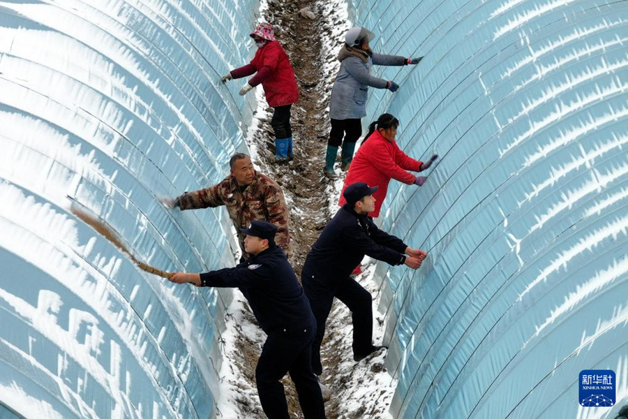 1月19日,江苏省宝应县公安局泾河派出所民警在钱庄村帮助农户清除温棚上的积雪。 近期,针对大范围降雪及降温天气,各地采取多项措施积极应对。 ...