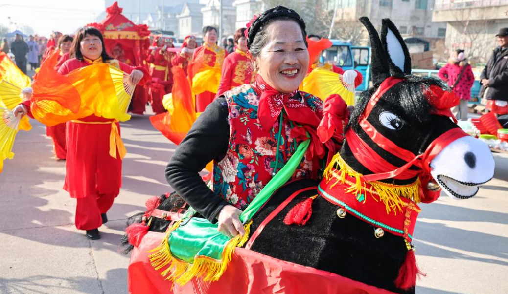2月2日,在江苏省连云港市赣榆区墩尚镇乡村大集上,民间艺人进行赶毛驴表演。 农历马年春节临近,各地张灯结彩、举办喜庆活动;众多企业加紧生产马年装饰品供应市场;市民备年货、赶市集,喜迎新春。 新华社发(王健民摄) ...