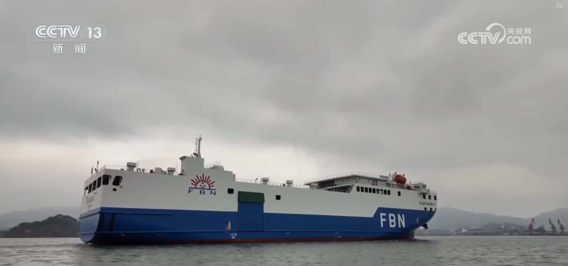 CCTV/13 ante ter des 日 出 . , 4 l / ■■■ 11 新 . . Pri 1 央视网消息:1月27日,福建今年首艘新造滚装船从宁德白马港区启航,驶往印度尼西亚,福建船舶外贸迎来新年"开门红"。 CCTV 13 t 亚 " 官 t i 业 Ma TO Re B l ■ 作为福建重要的船舶建造基地,近年来,宁德依托成熟的船舶制造产业基础与自主研发能力,已形成从船舶设计、零部件配套到总装建造的完整产业 链。2025年,当地船舶产业产值达20.34亿元,同比增长59.8%,船舶出口订单较上一年翻了一倍。造船企业负责人表示,目前,公司手上滚装船出口订单共 6艘,除印度尼西亚外,还涵盖阿联酋、马来西亚等国家订单金额累计5个多亿元,预计今年船舶订单的出口是去年的3到4倍。 为保障船舶顺利出口,当地边检部门推出"线上预审+线下快办"模式,将手续办理时间从2个工作日压缩至4小时内,助力"中国造"船舶走向海外市场。 该滚装船由福建宁德福安的船企自主设计建造,总长106米,型宽22.6米,总吨位达11606吨,可承载300余辆汽车。采用定制化多层甲板设计,支持无 辅助设备独立装卸,适配印尼群岛运输场景 ...