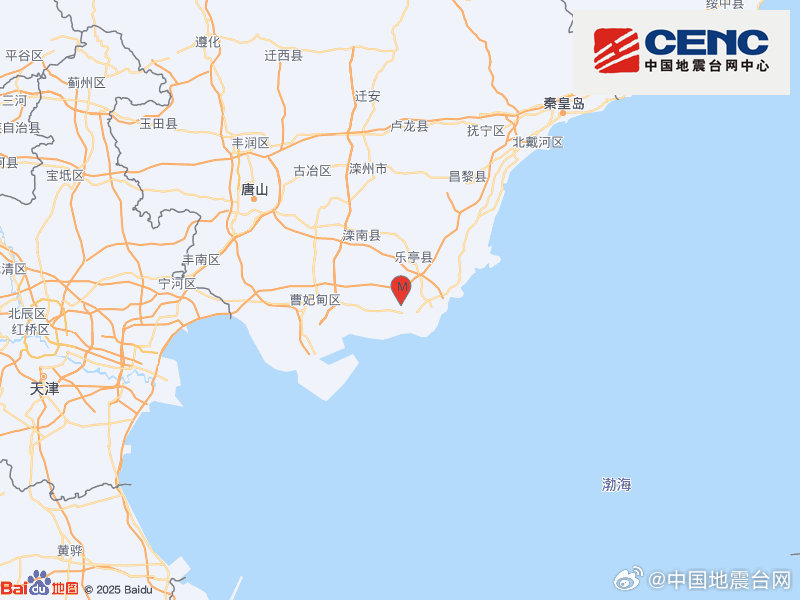 河北唐山市乐亭县发生2.4级地震,震源深度15千米