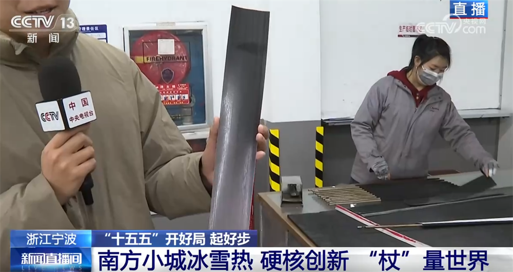 央视网消息:冰雪运动持续火热,滑雪装备也各种"上新",融入了众多科技元素。总台记者现在正在浙江宁波的一家运动器材生产企业, 请他带我们看看滑雪装备的科技含量。 在浙江宁波宁海县的一处生产车间,从这里走出去的运动器材简单来说有这几个特征:雪场常客、强力支撑、保持平衡。猜到是什么了 吗?别着急,给大家看一个道具,来帮大家猜这个谜底。现在记者手中拿着的是一块布,镜头推近,您会发现它是一块碳纤维布料。首先进行 烫布,保证平整;第二步,卷管机自动卷管,快速缠带,一气呵成;再经过烘烤、研磨、安装配件后,就变成了一根滑雪杖。对,谜底就 是"滑雪杖"。从一块布变成一根杖,平均只需要15秒。这不是魔术,而是滑雪杖里的"中国速度"。 直播 CCTV 13 = com SIM 东北地区 华北地区 Subs 20 2017 湖北 浙江 现在正是冰雪运动的黄金时期。如果是一个滑雪新手,会有很多顾虑,比如说滑雪杖太专业了,会用吗?出行收纳怎么办?没关系。您 看,这是一根三折叠滑雪杖,可以轻松塞进背包。使用时只需要一挥,立马变身;这是一根可以加装配件的滑雪杖,加上脚撑,瞬间变成自拍 杆,滑到哪儿拍到哪儿;对于长时间滑雪运动者来说,往往需要 ...