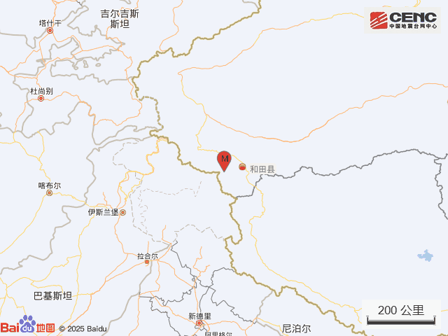 新疆和田地区和田县发生3.9级地震,震源深度12千米
