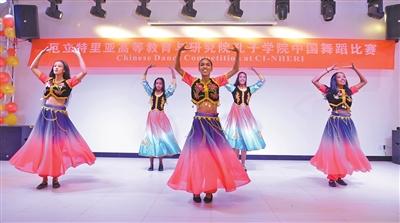 近日,厄立特里亚高等教育与研究院孔子学院举办中国舞蹈比赛。41名厄立特里亚选手向观众演绎了蒙 古舞、傣族舞、苗族舞、新疆舞等,带领观众领略中华舞蹈艺术的独特魅力。 今年22岁的艾琳是厄立特里亚阿斯马拉大学文学院学生,已在孔子学院学习4年,这次专门选择傣族舞 参赛。"傣族舞让人联想到孔雀的美丽与优雅。"艾琳说,学习中文、书法、舞蹈等课程,为她打开了解 中国文化的窗口,"我十分关注和中国有关的信息,一直梦想去中国看看。" 舞蹈比赛的指导老师拉赫尔,是在孔子学院授课的当地教师。2016年,拉赫尔赴贵州财经大学参加文化 交流活动,从此与中国民族舞蹈结缘。"同学们热爱中国文化,成长进步速度惊人。"她感慨道。拉赫尔 时常带着学生们登台表演,将中国舞蹈之美传递给更多厄立特里亚观众。 厄立特里亚高等教育与研究院孔子学院供图 舞台上,艾琳与同伴们身着长裙,跟随鼓点缓缓舒展手臂。指尖翘起,肩头轻耸,模仿孔雀在溪边嬉 戏……优美、轻盈而富有神韵的舞姿,赢得现场观众阵阵掌声。 2025年6月,由中企承建的孔子学院新教学大楼正式竣工并投入使用。新大楼可同时容纳约600名学生, 设有多间教室、活动室及休息区,建有一座可容纳150人以上的 ...