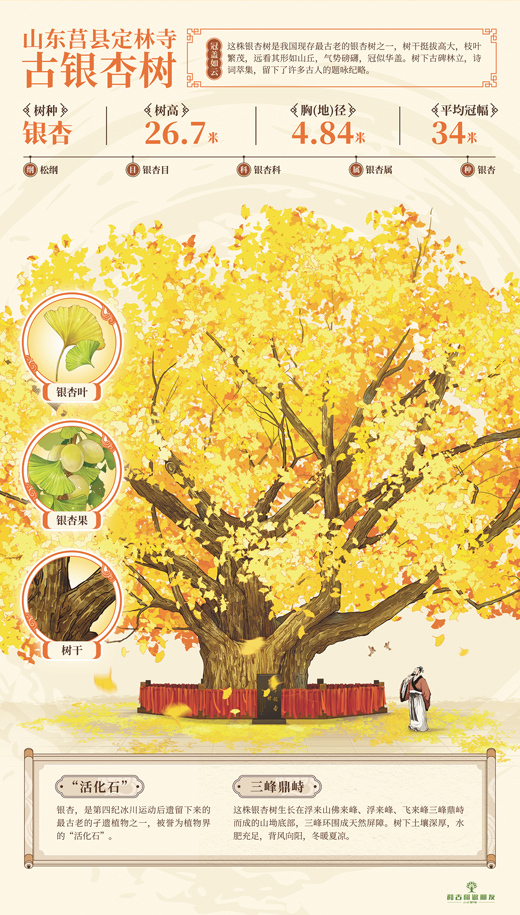 一张小小的邮票,方寸之间蕴藏着怎样的故事? 如何守护好古银杏树?莒县通过补充调查、建档立卡、挂牌保护等措施,构建古树保护体系。李建国就 是其中一位古树守护者。 "守树如做人,要尽职尽责、全心全意。"今年61岁的李建国,从事园艺工作已有40余年。自2014年到定 林寺以来,他便与这棵古银杏树朝夕相处。浇水、防治病虫害、人工疏果……日常工作琐碎,却非常重 要。蓟马是常见害虫之一,虫害严重时会导致叶片枯黄、树势衰退。为精准防治,每年5月下旬、7月下 旬、8月下旬,李建国都要定期为古树喷洒药液,预防虫害。 今年8月,在中国邮政发行的《古树名木》特种邮票上,一株山东日照市莒县的古银杏树格外引人注 目。 为了让守护工作更精细,李建国自2014年起坚持撰写"大树日记"。 这棵古银杏树,究竟有着怎样的魅力? "3月26日萌芽、4月10日开花、9月10日落果、10月25日左右黄叶……"在李建国的笔记本里,记录的不 只是物候变化,更有古树每一次"呼吸"的痕迹。温度、湿度、叶片状态、果实负荷,甚至哪一天发现异 常、如何处置,都被他一一写下。这些详细的记录,成为专家研判树况、制定养护方案的第一手依据。 从莒县县城出发西行约8公里,浮 ...