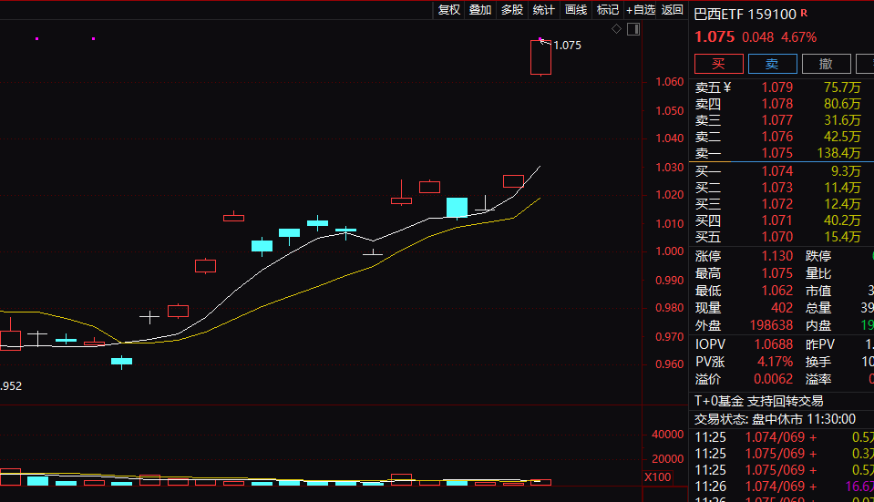 今天(1月22日)上午,A股市场整体走低,主要指数跌势温和,建筑材料板块大涨,成为上午A股板块的主要亮点。 上午ETF市场中,两只巴西主题ETF大涨,成为ETF市场全场焦点,盘中涨幅双双超过4%,巴西主题ETF大涨的背后,是近段时间巴西股市的强劲表现。 今天(1月22日)上午,A股市场整体走低,不过主要指数跌幅均不大。 行业板块和赛道方面,若按照申万一级行业划分,建筑材料板块领涨,板块涨幅超过3%,科顺股份大涨13.62%,万里石、九鼎新材涨停,东方雨虹、再 升科技等多股涨幅超过5%。 国防军工、石油石化等板块涨幅超过2%。 钢铁、煤炭、轻工制造等板块涨幅也居于市场前列。 有色金属、电力设备、美容护理等板块跌幅居前。 概念板块方面,可燃冰、草甘膦、页岩气等概念板块领涨。 两只巴西主题ETF大涨 值得注意的是,在今天上午的ETF市场中,两只巴西主题的ETF大涨,涨幅居于各类ETF前列。 行情数据显示,巴西ETF(159100)、巴西ETF易方达(520870)两只巴西主题的ETF盘中涨幅均超过4%,2026年以来,上述两只巴西主题的ETF累计涨幅均已 达一成左右。 A股建筑材料板块大涨 资料显示,巴西ETF(1 ...