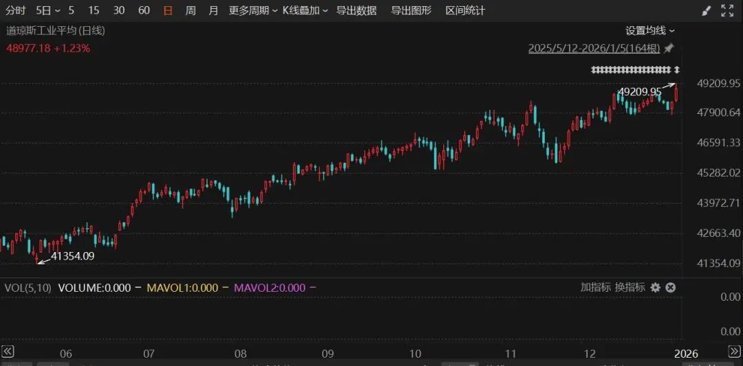 Group 1 - The US stock market indices collectively rose, with the Dow Jones Industrial Average increasing by 1.23% and reaching a new historical high, while the Nasdaq and S&P 500 rose by 0.69% and 0.64% respectively [1][3] - The upcoming US non-farm payroll report is a focal point for the market, as it may significantly influence the Federal Reserve's monetary policy path for 2026 [2] Group 2 - The S&P 500 index has seen a cumulative increase of 78% over the past three years, with a forecasted rise of 9.2% for this year, which aligns with the average total return rate since the beginning of the century [6] - Historical data indicates that after two consecutive years of at least 10% gains, the market typically experiences declines in subsequent years, as seen in 2020 and 2015 [6] - The energy sector experienced broad gains, with Halliburton and Schlumberger seeing significant stock price increases, as they are expected to participate in the reconstruction of Venezuela's energy infrastructure [8] - Nvidia's stock fell by 0.39%, and the company announced that its upcoming CES 2026 event will not feature new GPU products, focusing instead on gaming and creator applications [8] - Notable gains were observed in popular Chinese concept stocks, with the Nasdaq Golden Dragon China Index rising by 0.49%, while companies like Dingdong Maicai and Beike saw increases of over 7% and 6% respectively [9]