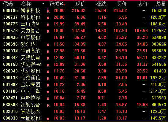 截至今日(1月22日)收盘,上证指数报收4122.58点,上涨0.14%;深证成指收于14327.05点,上涨 0.5%;创业板指上涨1.01%;科创50指数上涨0.41%。 不含当日上市新股,今日可交易A股中,上涨个股超3500只,占比超65%,下跌个股有1777只。其中, 收盘股价涨停的有92只,跌停股有5只。 数据来源: Wind 代码 军工装备+长江发动机+央企 从收盘涨停板封单量来看,中超控股最受资金追捧,收盘涨停板封单有6919.04万股,其次是贤丰控股 (维权)、盈方微,涨停板封单分别有6597.95万股、6020.22万股。 以封单金额计算,锋龙股份、盈方微、中超控股涨停板封单资金较多,分别有11.11亿元、6.19亿元、 5.38亿元。 据证券时报·数据宝统计,涨停个股中,以所属行业来看,数量居前的行业有机械设备、电子、国防军 工,分别有12股、11股、7股。 | | | | 1月22日涨停封单资金居前的个股 | | | --- | --- | --- | --- | --- | | 代码 | 名称 | 涨停封单额 | 涨停板 | 涨停原因 | | | | (亿元) | 情況 | | | 0 ...