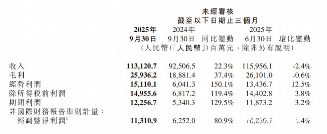 Core Viewpoint - Xiaomi's automotive division has finally turned profitable after more than a year of selling cars, achieving a significant milestone in its business development [1][6]. Financial Performance - In Q3 2025, Xiaomi reported total revenue of RMB 113.1 billion, a year-on-year increase of 22.3% but a quarter-on-quarter decrease of 2.4% [2][4]. - Adjusted net profit for the same period was RMB 11.3 billion, reflecting an 80.9% year-on-year growth and a 4.4% quarter-on-quarter increase [2][3]. - The gross profit margin for the overall business was 22.9%, with a notable increase in operating profit by 150.1% year-on-year [2][3]. Automotive Business - The automotive segment generated RMB 29 billion in revenue, marking a historical high with a year-on-year growth of 199.2%, and accounted for 25.6% of total revenue [6][8]. - For the first time, the automotive division achieved an operating profit of RMB 700 million in Q3 [1][6]. - Xiaomi delivered 108,796 vehicles in Q3, and is on track to meet its annual delivery target of 350,000 vehicles [1][8]. Smartphone and AIoT Business - The smartphone and AIoT segment generated RMB 84.1 billion in revenue, representing 74.4% of total revenue, with a slight year-on-year increase of 1.6% [3][4]. - The gross margin for the smartphone and AIoT business was 22.1%, up 1.3% year-on-year [3][4]. - Xiaomi's smartphone sales ranked second in the domestic market, with a market share of 18.9% in the RMB 4,000-6,000 price range, an increase of 5.6% year-on-year [4][5]. Research and Development - Xiaomi's R&D investment reached RMB 235 billion in the first three quarters, with a record high of 24,871 R&D personnel [8][10]. - The company is focusing on AI development, with significant outputs from its AI team within a year of formation [8][10]. Future Outlook - The company anticipates challenges in 2026, particularly regarding automotive gross margins due to potential changes in tax policies and increased competition in the automotive sector [1][8]. - Xiaomi aims to expand its presence in the high-end smartphone market, particularly in the RMB 6,000+ segment, leveraging the success of its Xiaomi 17 series [5][8].