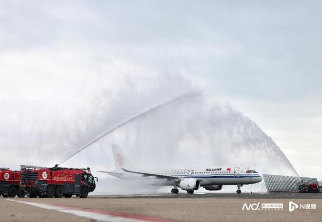 国产大飞机C919载国旗首飞香港,迎民航界最高礼遇过水门