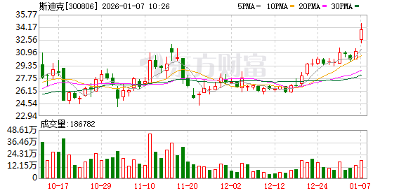 斯迪克股价创出历史新高,截至9:34,该股上涨6.71%,股价报33.22元,成交量521.18万股,成交金额 1.74亿元,换手率1.65%,该股最新A股总市值达150.59亿元,该股A股流通市值105.05亿元。 证券时报·数据宝统计显示,斯迪克所属的基础化工行业,目前整体涨幅为0.30%,行业内,目前股价上 涨的有178只,涨停的有普利特、彤程新材等5只。股价下跌的有233只,跌幅居前的有农心科技、神剑 股份、海阳科技等,跌幅分别为10.01%、4.22%、3.80%。 公司发布的三季报数据显示,前三季度公司共实现营业收入22.39亿元,同比增长11.57%,实现净利润 4526.98万元,同比下降15.81%,基本每股收益为0.1000元,加权平均净资产收益率2.02%。(数据宝) (文章来源:证券时报网) ...