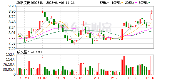 据天眼查APP显示,山西华阳集团新能股份有限公司成立于1999年12月30日,注册资本360750万人民 币。(数据宝) (文章来源:证券时报网) 数据宝统计,截至13:59,华阳股份成交额11.93亿元,创2024年2月23日以来新高。最新股价上涨 6.97%,换手率3.75%。上一交易日该股全天成交额为3.20亿元。 ...