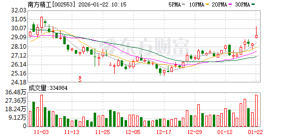 证券时报·数据宝统计显示,今日公布2025年业绩预告公司中,截至发稿股价较为强势的有金安国纪、 毅昌科技、南方精工等,股价分别上涨10.01%、9.96%、5.54%。 资金面上看,南方精工近5日主力资金总体呈净流出状态,累计净流出848.72万元,其中,上一交易日 主力资金全天净流出1213.23万元。 (文章来源:证券时报网) 南方精工股价出现异动,截至今日9时37分,股价大涨5.54%,成交1898.73万股,成交金额5.60亿元, 换手率为7.57%,公司发布的最新业绩预告显示,预计2025年实现净利润3.00亿元—3.70亿元,净利润 同比增长1130.00%—1417.00%。 融资融券数据显示,该股最新(1月21日)两融余额2.93亿元,其中,融资余额为2.93亿元,近5日融资 余额合计增加4535.75万元,增幅为18.33%。(数据宝) ...