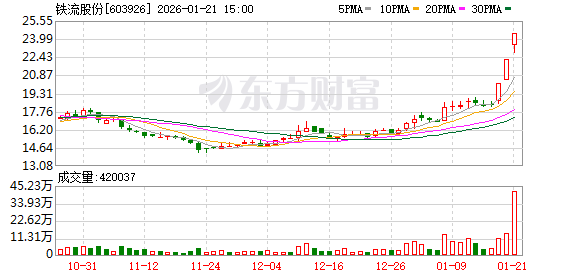 据天眼查APP显示,铁流股份有限公司成立于2009年11月26日,注册资本23471.6611万人民币。(数据 宝) (文章来源:证券时报网) 数据宝统计,截至14:58,铁流股份成交额10.08亿元,创上市以来新高。最新股价上涨10.00%,换手率 18.09%。上一交易日该股全天成交额为3.12亿元。 ...