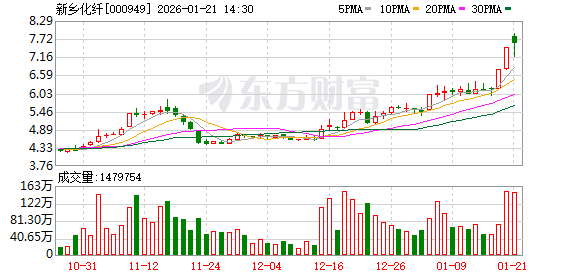 新乡化纤成交额创2024年12月10日以来新高