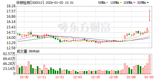 华测检测股价出现异动,截至今日9时32分,股价大涨10.78%,成交1797.13万股,成交金额2.98亿元, 换手率为1.26%,公司发布的最新业绩预告显示,预计2025年实现净利润10.13亿元—10.21亿元,净利 润同比增长10.00%—11.00%。 融资融券数据显示,该股最新(1月19日)两融余额4.18亿元,其中,融资余额为4.15亿元,近5日融资 余额合计减少4415.47万元,降幅为9.62%。(数据宝) (文章来源:证券时报网) 证券时报·数据宝统计显示,今日公布2025年业绩预告公司中,截至发稿股价较为强势的有华测检测、 明泰铝业、ST远智等,股价分别上涨10.78%、8.86%、5.07%。 资金面上看,华测检测近5日主力资金总体呈净流出状态,累计净流出3689.16万元,其中,上一交易日 主力资金全天净流入1312.32万元。 ...