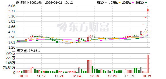 汉缆股份成交额创2021年12月8日以来新高