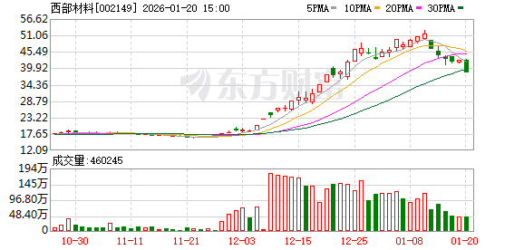 Group 1 - The stock of Xibu Materials experienced a limit down today, with a turnover rate of 9.43% and a trading volume of 1.82 billion yuan, showing a fluctuation of 12.04% [2] - The stock was listed on the Dragon and Tiger list due to a daily decline deviation of -9.17%, with net selling from the Shenzhen Stock Connect amounting to 24.05 million yuan [2] - The top five trading departments on the Dragon and Tiger list had a total transaction amount of 305 million yuan, with a net selling of 106 million yuan [2] Group 2 - The stock's main funds saw a net outflow of 351 million yuan today, with large orders contributing to a net outflow of 324 million yuan [2] - Over the past five days, the main funds have experienced a net outflow of 613 million yuan [2] - The stock has been listed on the Dragon and Tiger list 13 times in the past six months, with an average price increase of 1.75% the day after being listed and an average increase of 12.85% over the following five days [2] Group 3 - As of January 19, the margin trading balance for the stock was 1.445 billion yuan, with a financing balance of 1.441 billion yuan and a securities lending balance of 3.35 million yuan [3] - In the past five days, the financing balance has decreased by 174 million yuan, a decline of 10.77%, while the securities lending balance has decreased by 893,800 yuan, a decline of 21.04% [3] - The top buying and selling departments on January 20 included various securities firms, with significant buy amounts from Shenwan Hongyuan and Guosen Securities [3][4]