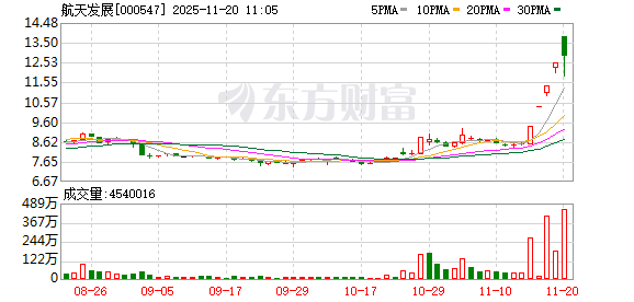 据天眼查APP显示,航天工业发展股份有限公司成立于1993年11月20日,注册资本159846.8269万人民 币。(数据宝) (文章来源:证券时报网) 数据宝统计,截至10:35,航天发展成交额54.16亿元,创上市以来新高。最新股价上涨2.00%,换手率 26.66%。上一交易日该股全天成交额为22.89亿元。 ...