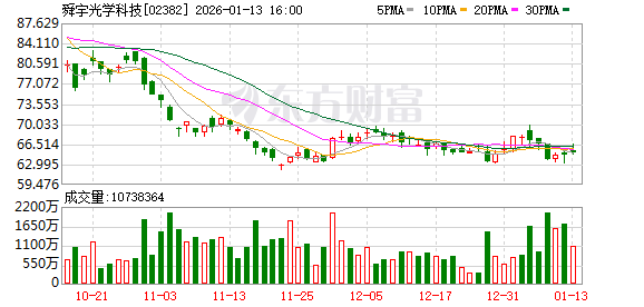 | 日期 | 回购股数(万股) | 回购最高价(港元) | 回购最低价(港元) | 回购金额(万港元) | | --- | --- | --- | --- | --- | | 2026.01.13 | 64.00 | 65.800 | 64.550 | 4178.78 | | 2026.01.12 | 124.00 | 64.850 | 63.150 | 7934.07 | | 2026.01.09 | 84.00 | 64.750 | 63.650 | 5398.94 | | 2026.01.08 | 84.00 | 64.650 | 63.650 | 5389.08 | (文章来源:证券时报网) 自1月8日以来公司已连续4日进行回购,合计回购356.00万股,累计回购金额2.29亿港元。 其间该股累 计下跌2.33%。(数据宝) 舜宇光学科技回购明细 证券时报·数据宝统计,舜宇光学科技在港交所公告显示,1月13日以每股64.550港元至65.800港元的价 格回购64.00万股,回购金额达4178.78万港元。该股当日收盘价65.050港元,上涨0.70%,全天成交额 7.02亿港元。 ...