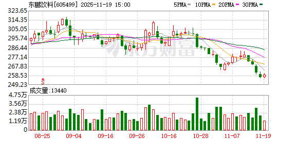 据天眼查APP显示,东鹏饮料(集团)股份有限公司成立于1994年06月30日,注册资本52001.3万人民币。 (数据宝) 11月19日东鹏饮料大宗交易一览 东鹏饮料11月19日大宗交易平台出现一笔成交,成交量7.24万股,成交金额1671.64万元,大宗交易成交 价为230.89元,相对今日收盘价折价10.85%。该笔交易的买方营业部为招商证券股份有限公司上海黄浦 区西藏南路证券营业部,卖方营业部为招商证券股份有限公司北京建国路证券营业部。 进一步统计,近3个月内该股累计发生8笔大宗交易,合计成交金额为6.52亿元。 证券时报·数据宝统计显示,东鹏饮料今日收盘价为259.00元,上涨0.96%,日换手率为0.26%,成交额 为3.48亿元,全天主力资金净流入1758.74万元,近5日该股累计下跌7.23%,近5日资金合计净流出1.27 亿元。 两融数据显示,该股最新融资余额为3.85亿元,近5日减少180.71万元,降幅为0.47%。 | 成交量 | 成交金额 | 成交价 | 相对当日收盘 | | | | --- | --- | --- | --- | --- | --- | | (万 | (万元) | 格 ...
