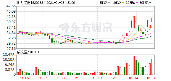 据天眼查APP显示,新疆科力新技术发展股份有限公司成立于2004年11月28日,注册资本8807.15万人 民币。(数据宝) 1月26日科力股份大宗交易一览 进一步统计,近1个月内该股累计发生5笔大宗交易,合计成交金额为923.33万元。 证券时报·数据宝统计显示,科力股份今日收盘价为42.00元,上涨8.64%,日换手率为33.64%,成交额 为4.46亿元,近5日该股累计上涨16.60%。 | 成交量 | 成交金额 | 成交价格 | 相对当日收 盘价折溢价 | 买方营业部 | 卖方营业部 | | --- | --- | --- | --- | --- | --- | | (万股) | (万元) | (元) | (%) | | | | | | | | 东吴证券股份有限公司 | 东莞证券股份有限公司 | | 2.43 | 100.02 | 41.16 | -2.00 | 上海西藏南路证券营业 | 徐州中山南路证券营业 | | | | | | 部 | 部 | (文章来源:证券时报网) 科力股份(920088)1月26日大宗交易平台出现一笔成交,成交量2.43万股,成交金额100.02万元,大宗 交易成交价为41 ...