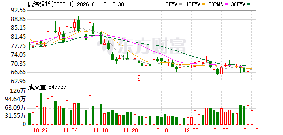 | 成交量(万 | 成交金额(万 | 成交价格 | 相对当日收盘折溢价 | 买方营业 | 卖方营业 | | --- | --- | --- | --- | --- | --- | | 股) | 元) | (元) | (%) | 部 | 部 | | 21.99 | 1493.12 | 67.90 | 0.00 | 机构专用 | 机构专用 | (文章来源:证券时报网) 证券时报·数据宝统计显示,亿纬锂能今日收盘价为67.90元,上涨1.10%,日换手率为2.75%,成交额为 37.54亿元,全天主力资金净流入2.05亿元,近5日该股累计下跌1.59%,近5日资金合计净流出6.39亿 元。 两融数据显示,该股最新融资余额为52.66亿元,近5日增加1.99亿元,增幅为3.92%。(数据宝) 1月15日亿纬锂能大宗交易一览 亿纬锂能1月15日大宗交易平台出现一笔成交,成交量21.99万股,成交金额1493.12万元,大宗交易成交 价为67.90元。该笔交易的买卖双方均为机构专用席位。 ...