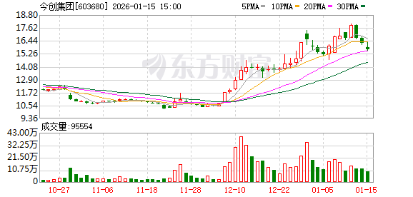 证券时报·数据宝统计显示,今创集团今日收于15.67元,下跌3.51%,日换手率为1.22%,成交额为1.50 亿元,近5日下跌7.28%。通过对2025年业绩预增50%以上的个股走势进行统计发现,预告发布后当日股 价上涨的占比70.21%,股价发布当日股价涨停的有2家。预告发布后5日股价上涨的占比78.72%。 资金面上,该股今日主力资金净流出3508.86万元,近5日资金净流出3786.74万元。(数据宝) (文章来源:证券时报网) 今创集团(603680)1月15日发布2025年业绩预增公告,预计实现净利润为5.40亿元~6.20亿元,净利润 同比增长78.77%~105.25%。 ...