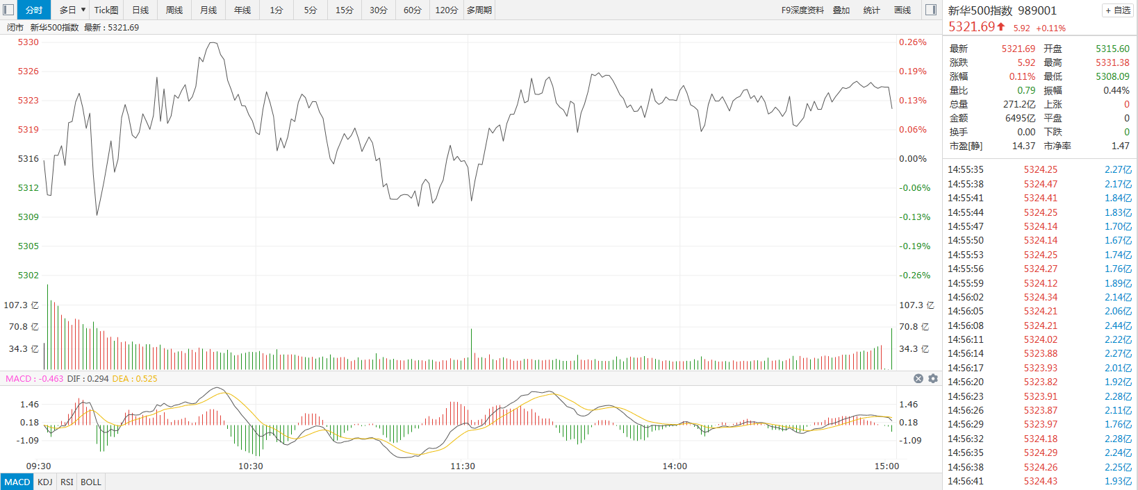 Group 1 - The Xinhua 500 Index (989001) closed at 5321.69 points on February 10, with a slight increase of 0.11% [1] - The index experienced narrow fluctuations during the day, reaching a high of 5331.38 points and a low of 5308.09 points [3] - The total trading volume of constituent stocks for the day was reported at 649.5 billion yuan [3] Group 2 - Wanda Film led the gainers among constituent stocks, hitting the daily limit, while Dongfang Electric, Hengtong Optic-Electric, and Xinlitai also saw significant increases [3] - JinkoSolar experienced the largest decline among constituent stocks, falling by 4.92%, with Shanshan Co. and Mingyang Smart Energy also showing notable decreases [3]