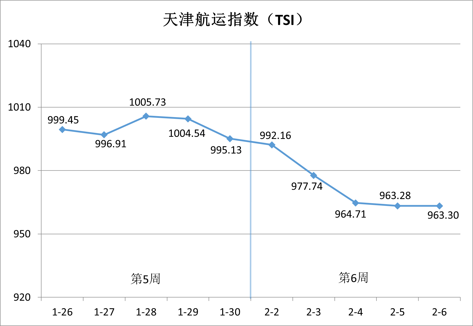 天津航运指数2026年第6周累计下跌3.20%