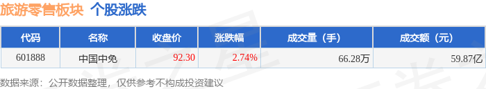 旅游零售板块1月29日涨2.74%,中国中免领涨,主力资金净流入3.31亿元