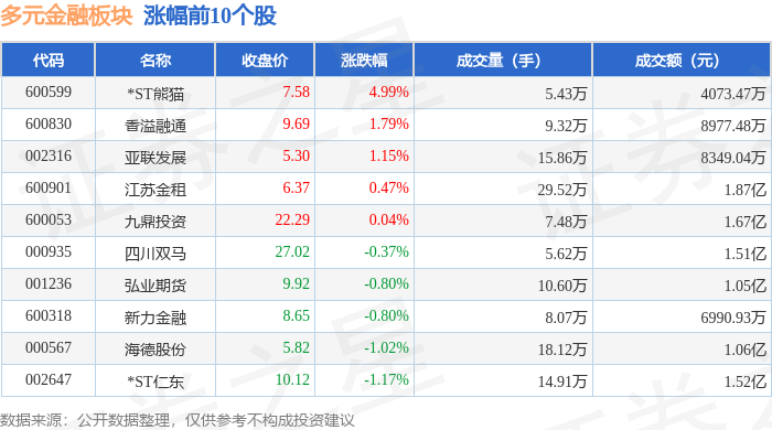 | 代码 | 名称 | 收盘价 | 涨跌幅 | 成交量(手) | 成交额(元) | | | --- | --- | --- | --- | --- | --- | --- | | 002670 | 圖盛证券 | 16.40 | 0.92% | 55.95万 | | 9.30亿 | | 601211 | 圆圆影画 | 19.83 | 0.15% | 140.08万 | | 27.96亿 | | 650109 | 信达证券 | 17.59 | -0.11% | 17.87万 | | 3.14亿 | | 601555 | 东吴证券 | 9.57 | -0.42% | 78.24万 | | 7.51亿 | | 601198 | 东兴证券 | 13.90 | -0.43% | 25.58万 | | 3.56亿 | | 666009 | 招商证券 | 17.11 | -0.93% | 62.79万 | | 10.75亿 | | 601788 | 光大证券 | 16.76 | -0.95% | 26.44万 | | 4.45亿 | | 000686 | 东北证券 | 9.08 | -1.09% | 35.53万 | | 3 ...