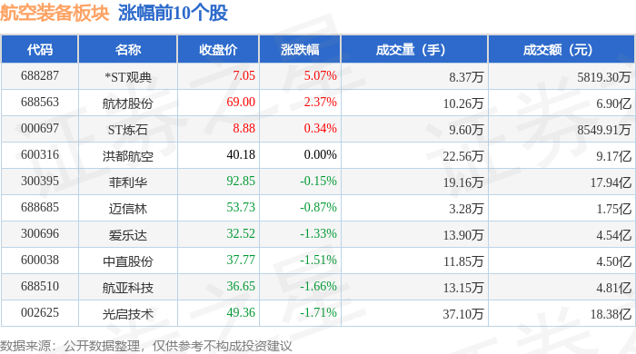 证券之星消息,1月26日航空装备板块较上一交易日下跌3.74%,航发科技领跌。当日上证指数报收于 4132.61,下跌0.09%。深证成指报收于14316.64,下跌0.85%。航空装备板块个股涨跌见下表: 从资金流向上来看,当日航空装备板块主力资金净流出32.56亿元,游资资金净流入10.48亿元,散户资金 净流入22.09亿元。航空装备板块个股资金流向见下表: | 代码 | 名称 | 主力净流入(元) | 主力净占比 游资净流入 (元) | | 游资净占比 散户净流入 (元) | | 散户净占比 | | --- | --- | --- | --- | --- | --- | --- | --- | | 300034 | 钢研高纳 | 1.27亿 | 11.36% | 1063.65万 | 0.95% | -1.38 Z | -12.31% | | 002625 | 光启技术 | 1.27 Z | 6.91% | 277.34万 | 0.15% | -1.30亿 | -7.06% | | 300696 | 爱乐达 | 3534.77万 | 7.78% | 449.44万 | 4 0.99% | -3984. ...