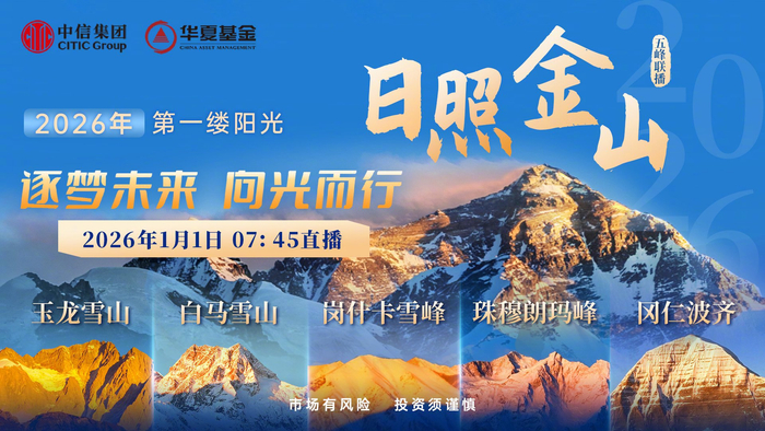 【直播预告|2026年#五峰联播日照金山#来了】玉龙雪山,白马雪山,岗什卡雪峰,珠穆朗玛峰,冈仁 波齐,共赴2026年第一缕阳光,中信集团、中信证券联合华夏基金邀请您在新的一年一起逐梦未来、向 光而行!来直播间迎曙光、接好运吧~2026年1月1日7:45,我们不见不散。 ...