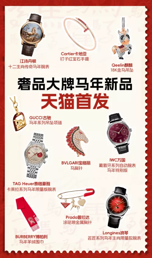 江诗丹顿、宝格丽、GUCCI、PRADA等全球奢品大牌超万款马年新品天猫首发